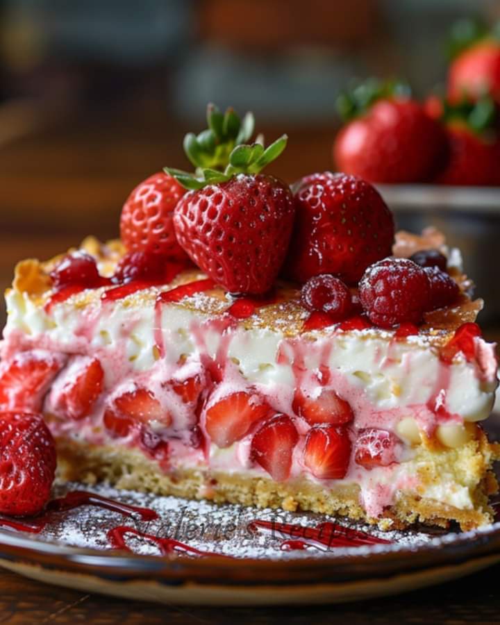 2️⃣ Gently fold in the diced strawberries and strawberry jam.