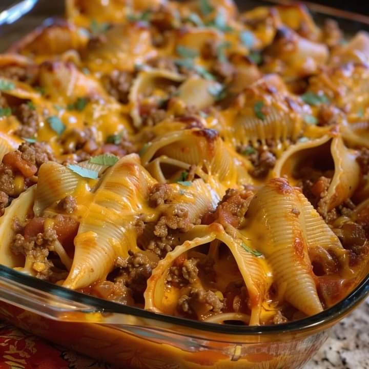 Scoop into the jumbo pasta shells and top with the remaining salsa and cheese.