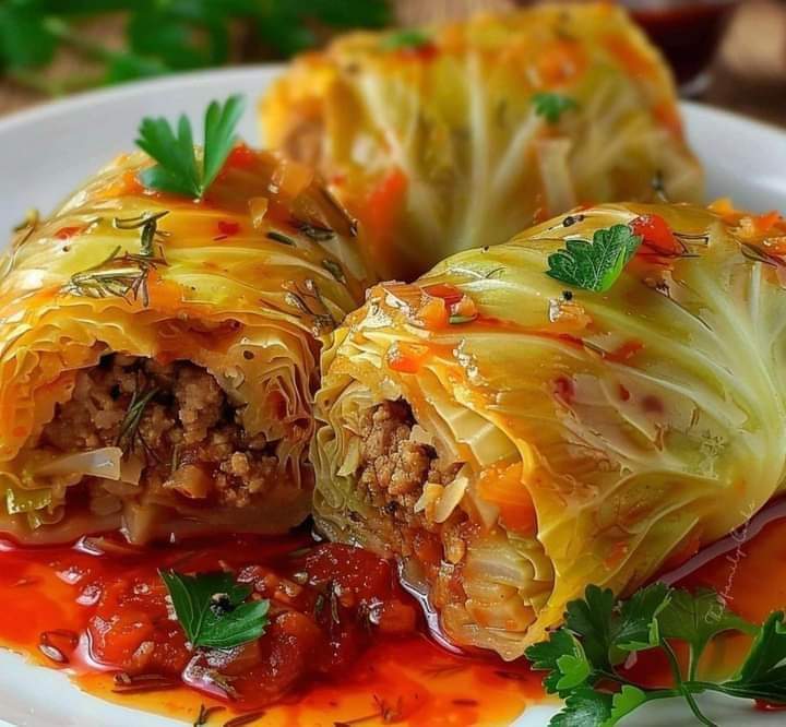 Cut out the thick vein from the bottom of each leaf, making a V-shaped cut. Place about 1/4 cup meat mixture on a cabbage leaf; overlap cut ends of leaf. Fold in sides. Beginning from the cut end, roll up. Repeat.
