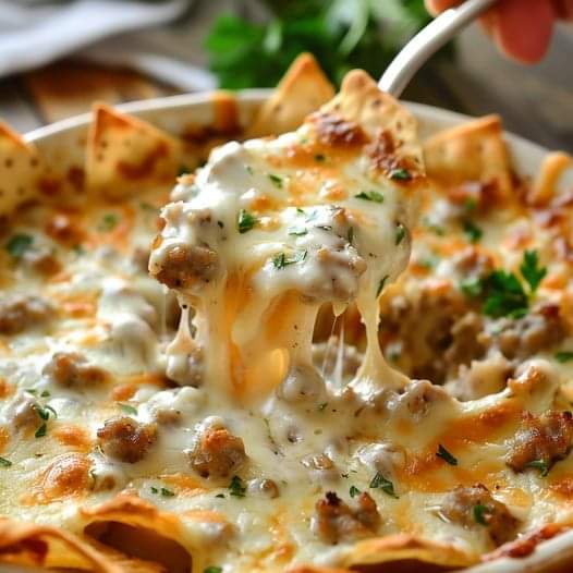 Serve: Transfer the hot and creamy Sausage Cheese Dip to a serving bowl. Serve immediately with tortilla chips, crostini, or your favorite dippers.
