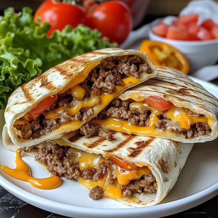 The Grand Finale: Fold the bottom half of the tortilla over the filling, then fold in the sides to create a neat package. Gently fold the top flap down to secure the wrap. Repeat with the remaining tortillas and ingredients. Now you’re ready to devour your delicious and mess-free Grilled Cheeseburger Wrap!