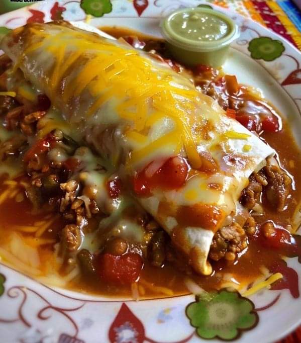 - Bake: Pour half the enchilada sauce into an 8×8″ baking dish. Place burritos seam-side down, cover with remaining sauce, and bake for 10 minutes.