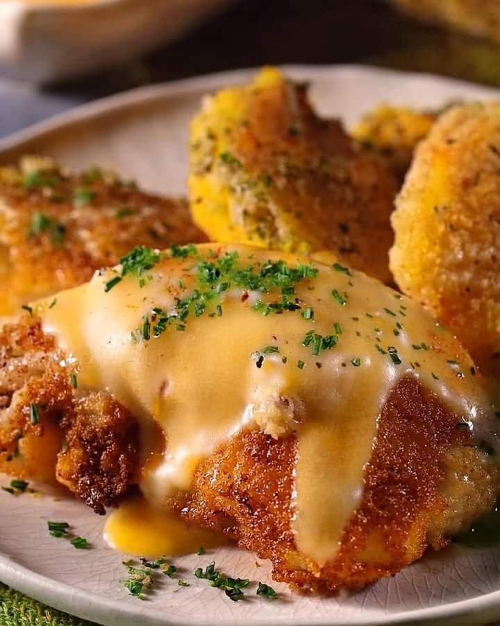Enjoy this delicious and comforting baked chicken dish with its crispy cheddar crust!
