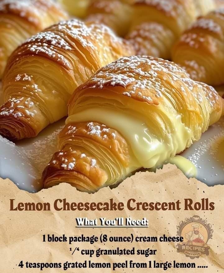 While cooling, prepare the glaze – in a small bowl, add powdered sugar and 2 teaspoons of lemon juice, mixing well until smooth. Drizzle lemon glaze over crescent rolls. Serve warm.