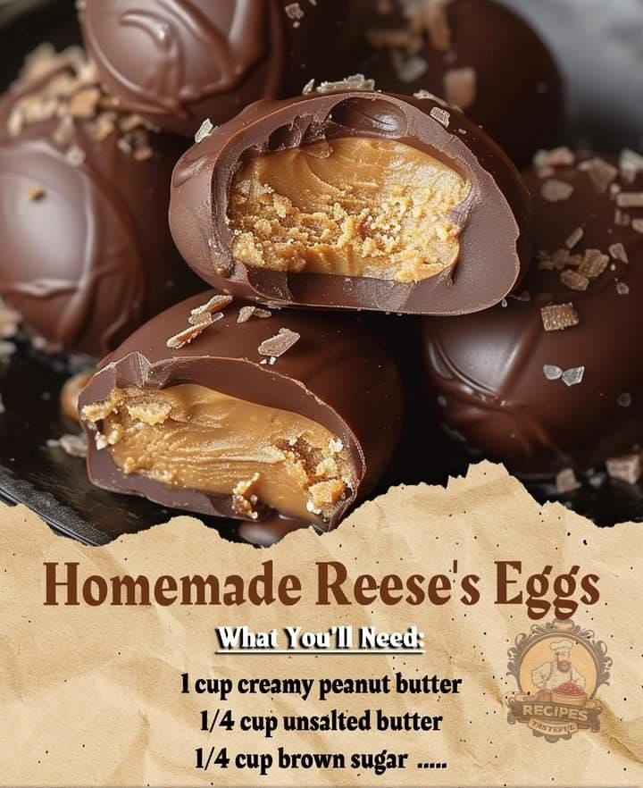 Shape the peanut butter mixture into egg shapes, then place them on a baking sheet lined with parchment paper. Freeze for about 1 hour, or until firm.