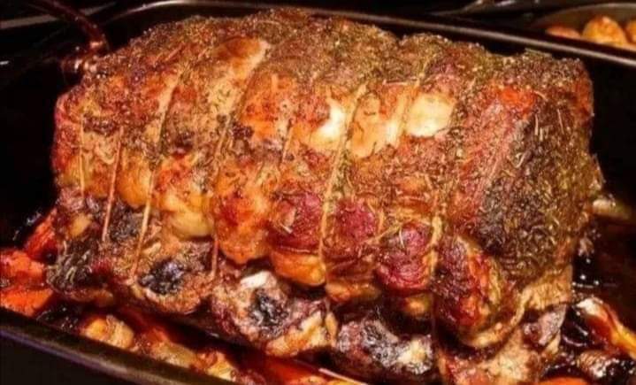 Place the onion slices in the bottom of a roasting pan. Put aside.