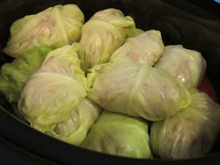 Cut out the thick vein from the bottom of each leaf, making a V-shaped cut. Place about 1/4 cup meat mixture on a cabbage leaf; overlap cut ends of leaf. Fold in sides. Beginning from the cut end, roll up. Repeat.